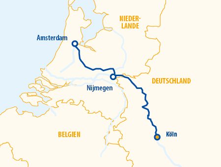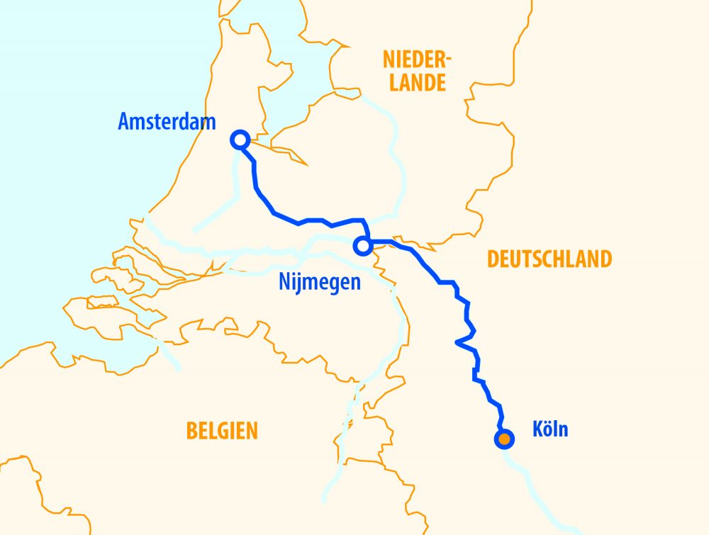 Zurück auf dem Rhein, liegen wir bereits in den frühen Morgenstunden in der alten Universitätsstadt Nijmegen. Wir haben die Möglichkeit an einem organisierten Stadtrundgang teilzunehmen. Stromaufwärts kreuzen wir auf dem „Vater“-Rhein, vorbei an malerischen Landschaften, zurück nach Köln. Wir genießen ein letztes Mal das ausgiebige Frühstück, bevor wir in der Domstadt von Bord gehen.