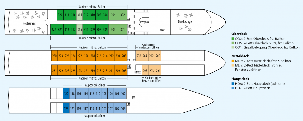 Flusskreuzfahrt mit 6 Übernachtungen an Bord in der gebuchten Kategorie