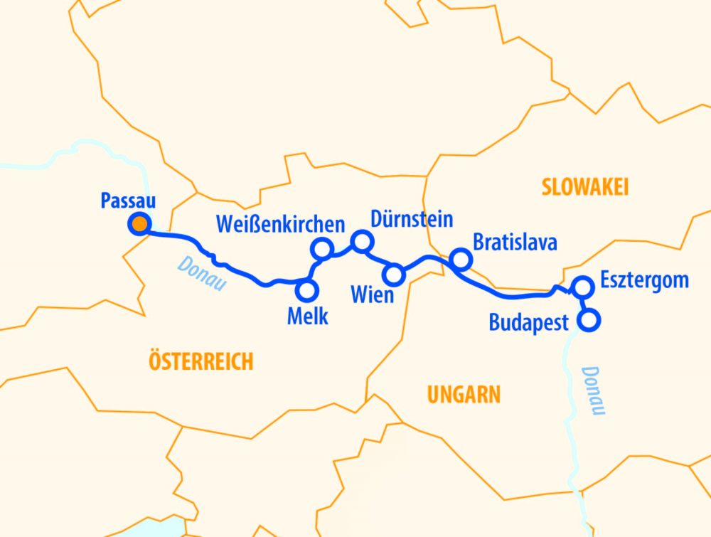 Nach einem Zwischenstopp in Passau beginnt der zweite Teil unserer Reise – und wir dürfen uns auf einen festlichen Silvesterabend in Budapest freuen. Dazwischen lassen wir uns vom winterlichen Melk verzaubern und erleben Wien zur besinnlichsten Jahreszeit. Wir erreichen Bratislava, mit ausreichend Gelegenheit für individuelle Entdeckungen oder geführte Besichtigungen. Schließlich klingt die Reise nach einem letzten Ausflug in die Wachau in Passau aus – erfüllt von wunderschönen Eindrücken, festlicher Stimmung und dem Gefühl, das neue Jahr mit Leichtigkeit und Stil begonnen zu haben.